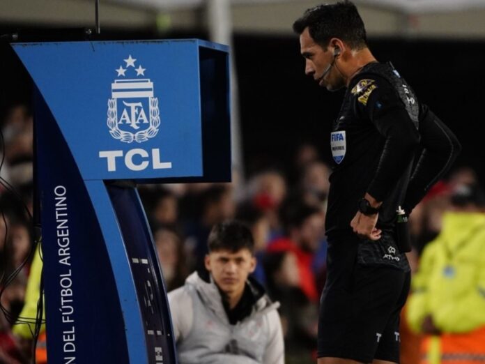 Sin embargo, el saque desde el medio se dilató cuando Andrés Merlos llamó a Facundo Tello desde el VAR, al tener que revisar una jugada confusa. Una vez trazadas las líneas, desde la cabina de asistencia de video llegaron a la conclusión de que en el disparo previo de Lucas Martínez Quarta que derivó en el gol, el delantero del Millonario estaba por delante de la línea del arquero Jeremías Ledesma, dejando el tanto anulado.
